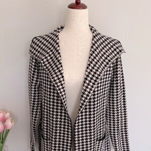 *New with Tags* Stylish houndstooth coat with a removable belt. Features a classic black and white pattern. Functional front pockets.