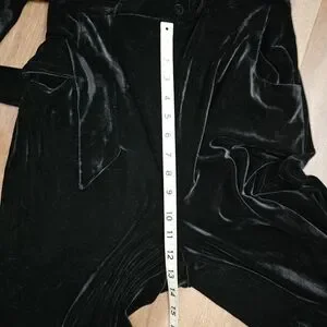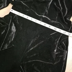 Step out in style with this elegant black velvet jumpsuit. Perfect for any occasion, it offers a sleek and sophisticated look.