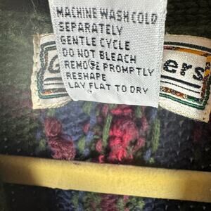 The Vintage 90s Gina Peters Knit Plaid Embroidered Button Sweater Vest in size Medium is a stylish and unique piece for any woman's wardrobe. Made from a combination of Ramie and Cotton, this Chunky-Knit vest features a Sleeveless design with a V-Neckline, perfect for casual occasions in the winter and fall seasons. The multicolor plaid pattern accented with buttons and embroidered details adds a touch of retro flair to this classic 90s-inspired garment. Ideal for a regular fit and featuring the signature brand of Gina Peters, this sweater vest will make a fashionable statement in any outfit. Sweater vest has some loose threads as seen in photo and is missing a button - also shown - with a little TLC this will be back up and running in no time - beautiful vintage style - see photos for details.