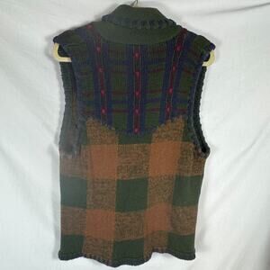 Vintage 90s Gina Peters Knit Plaid Embroidered Button Sweater Vest Size Medium