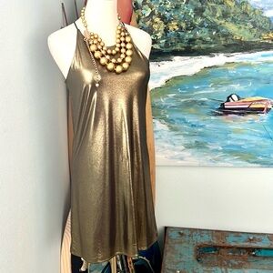 Love...Ady Liquid/Flare Gold Metallic Dress, All-Seasons, Day to Night EUC, size XS, #resale, #luxuryresale, #designerresale, #prelovedluxury, #resell, #shopresale, #gentlyused, #preowned, and #usedbutloved. #gold #fashion, #style, #ootd, #outfitoftheday, #whatiwore, #fashionblogger, #fashionista, #fashionstyle, #fashionphotography #instafashion