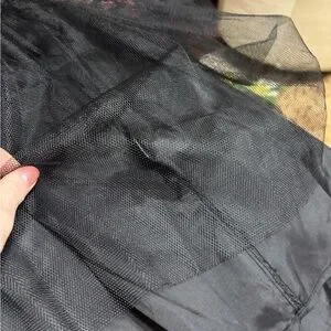Chic black dress featuring vibrant red floral designs. Ideal for stylish events. Lined with a tulle underskirt & pockets!
