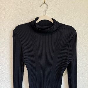 By Anthropologie Womens Large Black Ribbed Turtleneck Sweater Stretchy Minimal Boho Preppy Classy