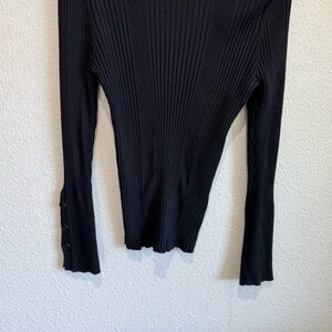 By Anthropologie Womens Large Black Ribbed Turtleneck Sweater Stretchy Minimal