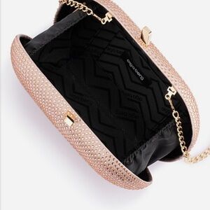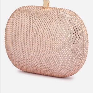 Chic metallic pink clutch with a textured design. Perfect for evening events.