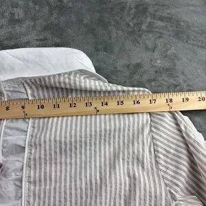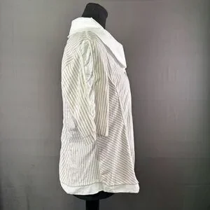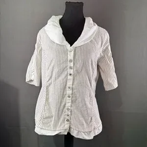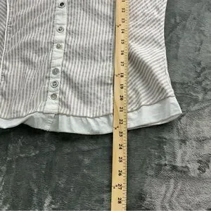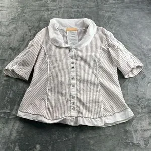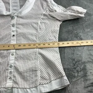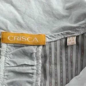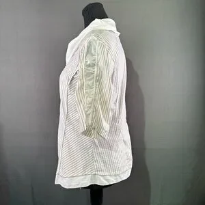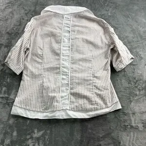 VTG Crisca Escada Blouse Women’s L Pinstripes Ruffle Buttons Academia White Gray
