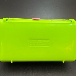 This vintage 1993 Caboodles Rec Room Garage Playset Case from Toy Biz is a must-have for collectors and fans of this iconic toy. The set includes a doll and car, as well as various accessories, all packed in a carrying case. The case opens to reveal different play levels. Included with the set are a checkerboard, a tennis net, tennis racquets, a ball, ping pong table and racquets, a pool table with triangle of balls and pool sticks, a comb, a stand, a purse, a phone, a pink car, a mini doll with red hair, and a few other accessories.