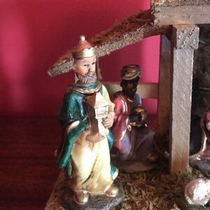 Giftco Vintage Christmas Nativity Scene Wood Manger Mary Joseph Jesus Kings Lamb