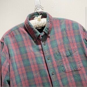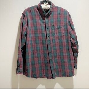 LL BEAN Men’s Red Green Plaid 100% Cotton Long Sleeve Button Down Shirt Size XL