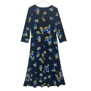 TALBOTS Women’s Midi Dress Size 8 FLORAL JERSEY TWIST FIT & FLARE Blue Stretch scoop neck