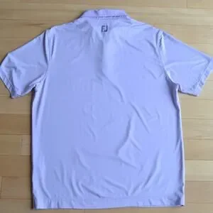 Stylish FootJoy polo shirt. Light purple color. Short sleeves. Button-up collar.