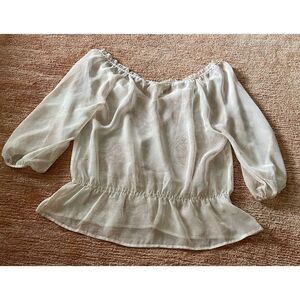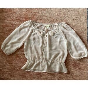 Women’s Pink Peach Chiffon 3/4 Sleeves Blouse Size L