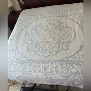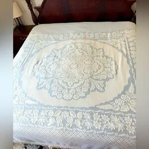 This 100% Cotton Woven King Bedspread features a lovely blue and cream medallion design with a 6" fringe, adding a touch of elegance to any bedroom. Measuring 115" in both length and width, this bedspread is designed to fit a King-sized bed. Perfect for adding a cozy and stylish element to your bedroom decor, this bedspread is a beautiful addition to any home.