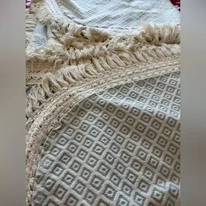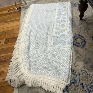 COTTON WOVEN KING BLUE CREAM 6” FRINGE MEDALLION BEDSPREAD 115x115”