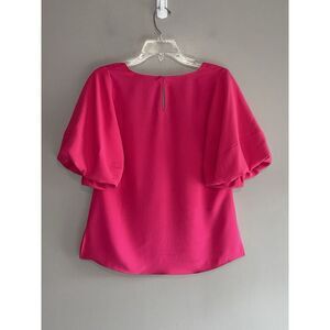 Amanda Uprichard Top Hot Pink Puff Sleeve V Neck Blouse Preppy Barbie Office XS