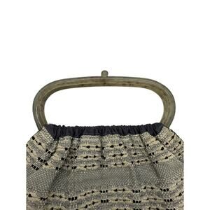 Vintage Antique 60's Style Macrame Top Handle Bag*Beautiful Navy Silver Threads