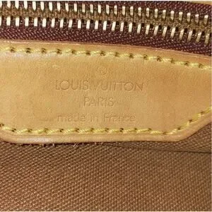 It features the classic LV monogram canvas, comfortable shoulder straps, and a spacious interior.