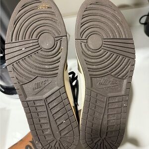Nike Air high-tops featuring a brown and white design. Includes additional laces in pink, black, and red.