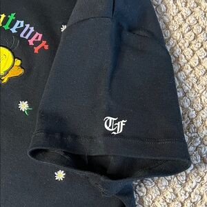 Black tee with florals all over. Teddy Bear and Tweety cute graphic with whatever wording. Brand New with tag.