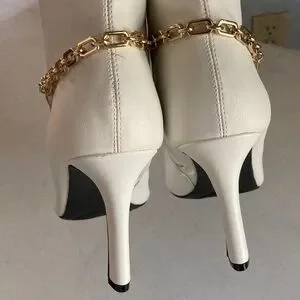 Elegant white boots with a stylish gold JUICY chain. Perfect for a fashionable statement.