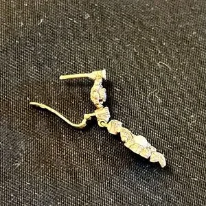 These elegant floral drop earrings feature intricate gold detailing and lustrous pearls. For pierced ears. Post with clasp.