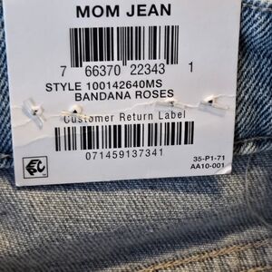 NWT Style&Co. Bandana Roses Vintage Style High Rise Straight Blue Mom Jeans
