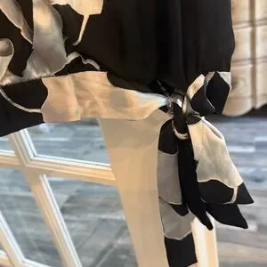 Silky Black Top with White and Silver Bows Ties at waist
