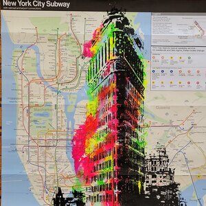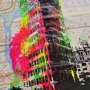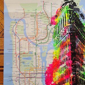 Celebrate the historic charm of New York City's "Flatiron" Building with this striking handmade artwork, painted directly onto an authentic NYC subway map. This one-of-a-kind piece beautifully blends urban history with artistic expression, making it a standout addition to any space.