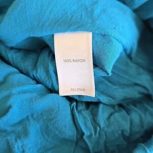 The J. Jill long dress in size L features a bohemian and cottagecore style with a V-neck and 3/4 sleeves, making it perfect for various occasions such as travel, parties, casual outings, or formal events. The dress is made of rayon fabric in shades of blues and greens, with a paisley pattern adding a touch of colorful charm. The pullover closure and lined interior ensure comfort and ease of wear. This designer piece is a classic addition to any wardrobe, suitable for all seasons with its versatile shift silhouette.