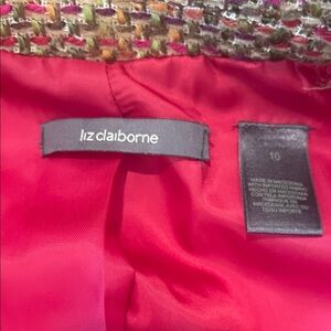 Liz Claiborne tweed jacket, beautiful colors for the fall. Fully lined comfortable to wear not itchy. Perfect for both casual and formal occasions.