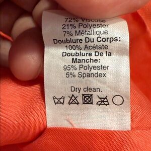 Vibrant coral orange J.Crew Schoolboy blazer. A stunning fall or spring color. Features a fully lined jacket blazer, V neck with notched collar and multiple front pockets. Tortoiseshell button on the cuffs and the two button front. Ideal for versatile styling. A great fall blazer to layer at the pumpkin patch or at a resort in the summer. Comfortable viscose, polyester and metallic fabric. Size 2.