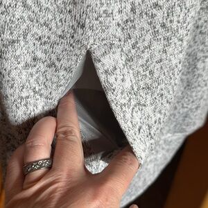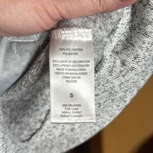 Stylish gray sweater with button-up collar and logo detail. Perfect for casual wear.