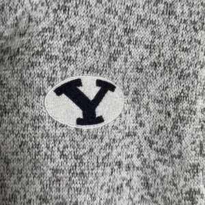 Champion Elite Brigham Young University BYU 1/4 Button Pullover Sweater Men's Gray Size Small Oversized