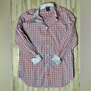 Tailorbyrd Mens Dress Shirt 2XLT Flip Cuff Long Sleeve Red Blue Button Up