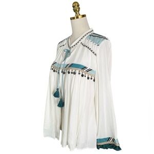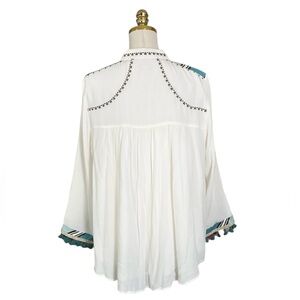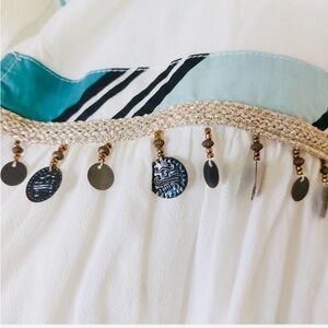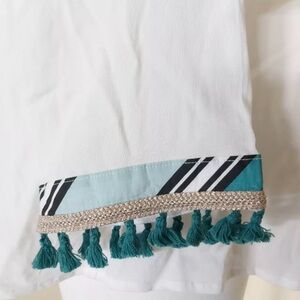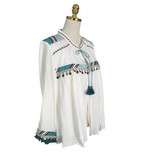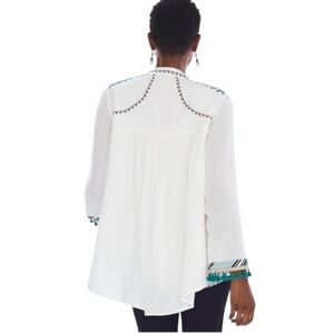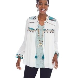 Chico’s Women's White Embellished Open Front Tassle Tie Lightweight Jacket Sz L