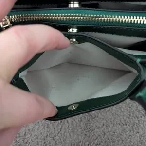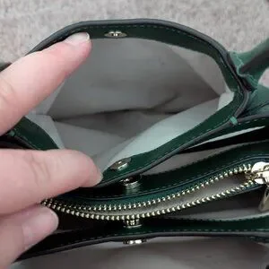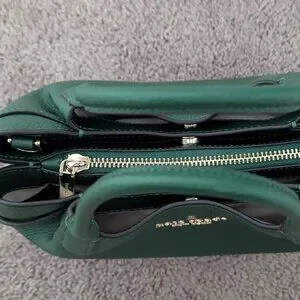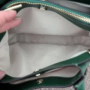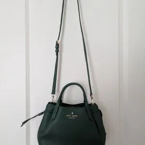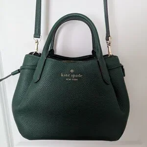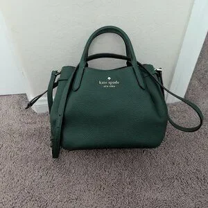 This listing is for a Kate Spade Small Dumpling Bag in the color Arugula. The bag measures 9.36 inches (Length), 5.2 inches (Width), and 7.88 inches (Height). The detachable, adjustable crossbody strap measures 22 inches and the top handles have a 4.5 inch drop. The item is pre-owned and has been used and there is some slight scratches on the feet on the bottom of the bag. Thank you for looking !!