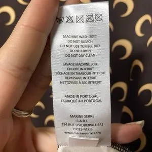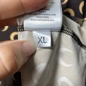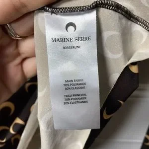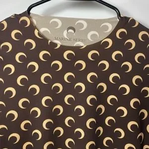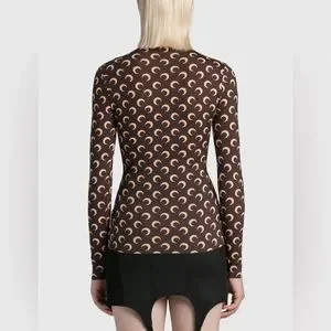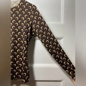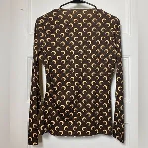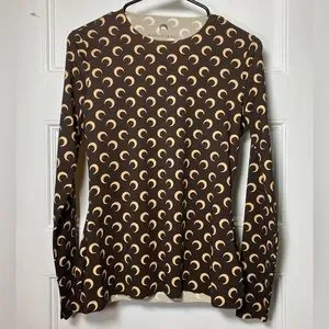 Stylish long sleeve top by Marine Serre. Features a brown base with cream crescent patterns. Perfect for a chic look.