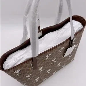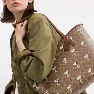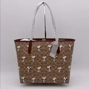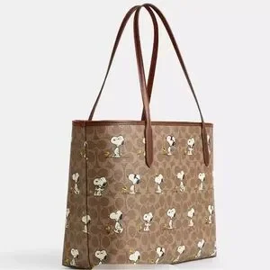 Coach X Peanuts City Tote Bag In Signature Canvas With Snoopy Print CBJ89