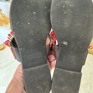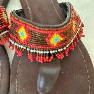 Chic brown sandals with vibrant beaded accents. Perfect for casual wear. Sz 7.5