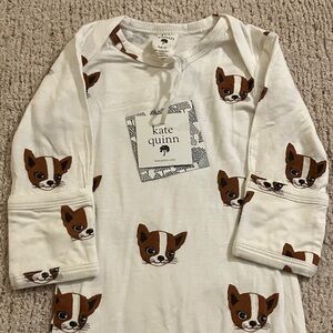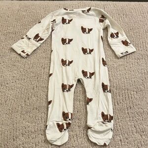 Kate Quinn Cream Footie with Brown Dog Pattern