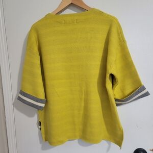 Color: Yellow/Lime with gray and white striped lining visible at the cuffs and hem.