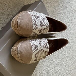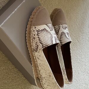 Chic snakeskin design. Comfortable espadrille style. Perfect for casual outings. Rarely worn. Excellent condition.
