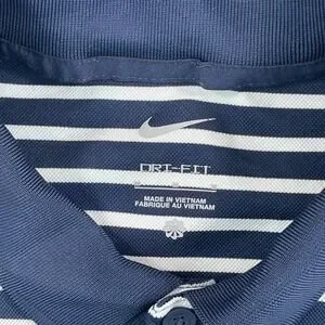 Nike x Michigan Wolverines Polo Shirt Men Medium Blue White Striped Performance