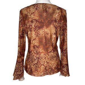 Route 66 Blouse Size Large Bell Sleeves V-Neck Side Slit Semi Sheer Lightweight