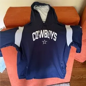 Dark blue Nike Therma Fit Dallas Cowboys On Field Collection hoodie. Features front pocket and drawstring hood. Comfortable fit 3XL.