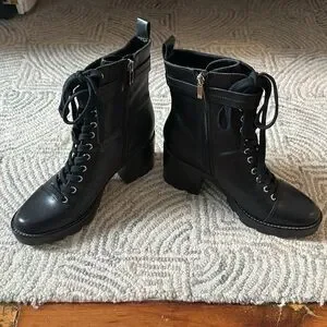 Marc Fisher Black Leather Lace-Up Ankle Boots - 9.5