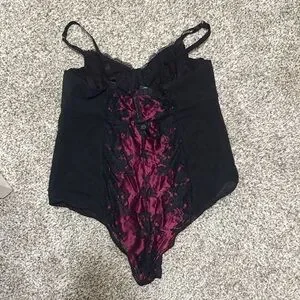 Torrid Black and Maroon Lace Bodysuit