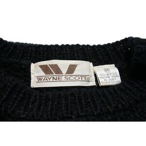 VTG Wayne Scott Black Abstract Pattern 3D Knit Acrylic Sweater Mens Medium 90s