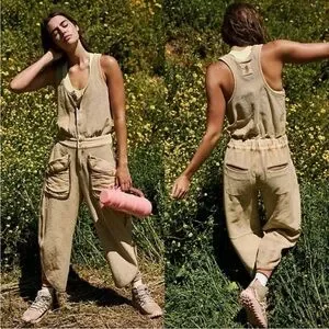 Free People movement Beige Timko Jumpsuit, small. Worn 1x, smoke, pet free home