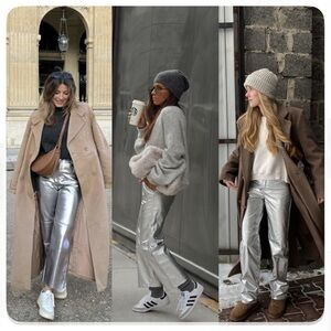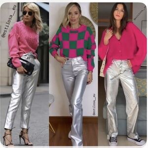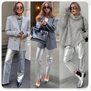 NWT Gianni Bini Tatania Metallic Silver Pants Sz 26